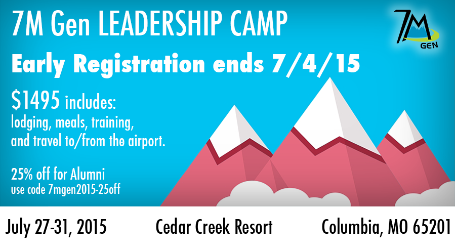 - Camp Alumni - don't forget to use your discount code 7mgen2015-25off at checkout on LanceWallnau.com